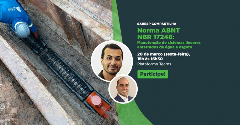 Nova Norma ABNT NBR 17248 é tema do Sabesp Compartilha sobre sistemas lineares enterrados de água e esgoto