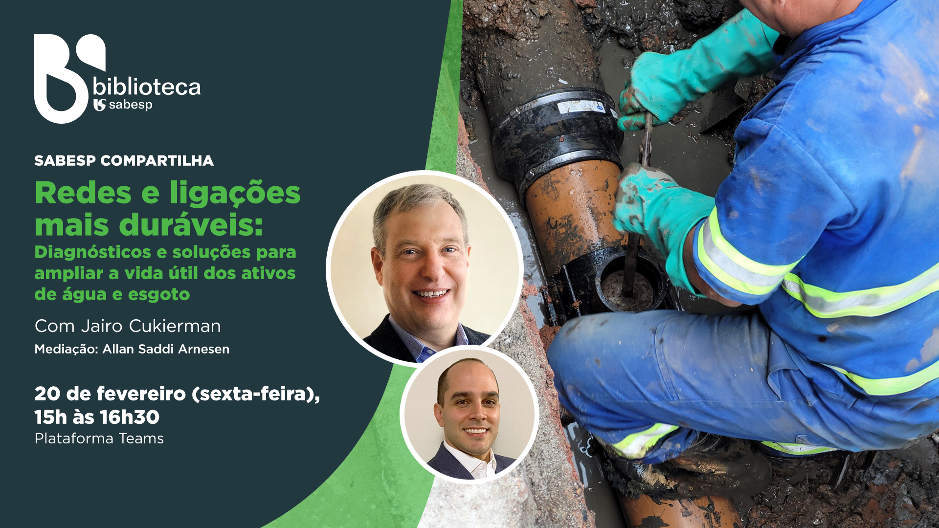 A mediação será realizada por Allan Saddi Arnesen, Engenheiro Sanitarista e Ambiental e Gerente de Acervo e Normalização Técnica da Sabesp.